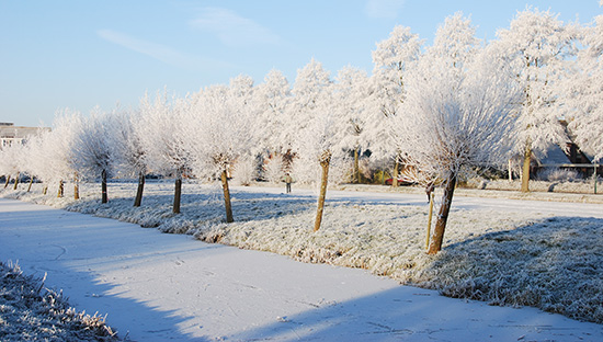 Onze prachtige ijsbaan wordt gevormd door een fraai onderhouden, ondiep slotenstelsel rondom het voetbal- en speelvelden in het park Mijzijde, Kamerik (provincie Utrecht)